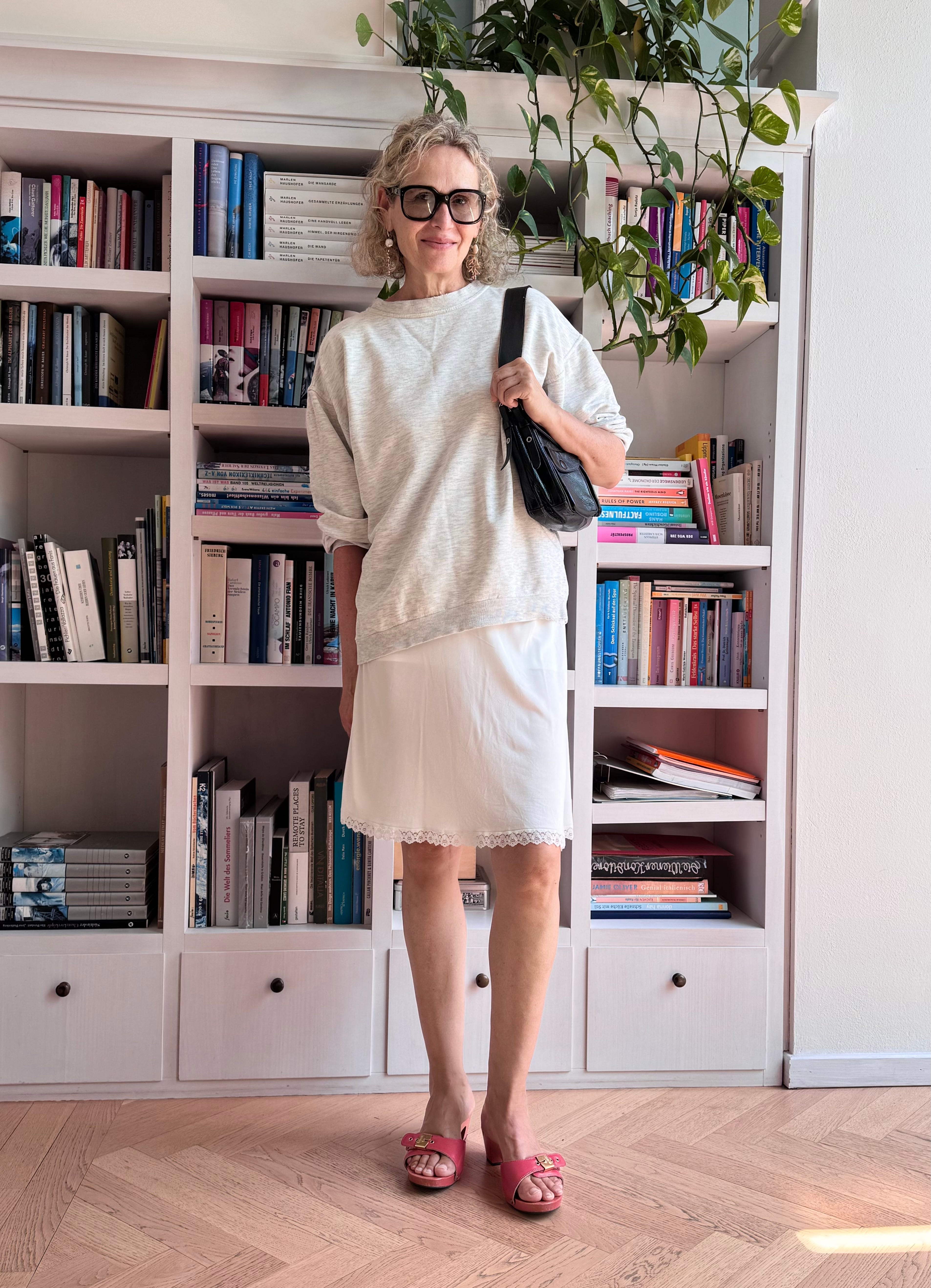 Wenn ich mir anschaue, welche Newsletter ich lese und was mich inspiriert, so sind das meist Outfits von jüngeren Frauen als ich. Aber wie gesagt, es geht nicht darum, auf jung zu machen, Inspirationen sind dazu da, sich inspirieren zu lassen und sie für sich und seinen Stil umzusetzen. Und der darf ruhig alterslos(er) sein.